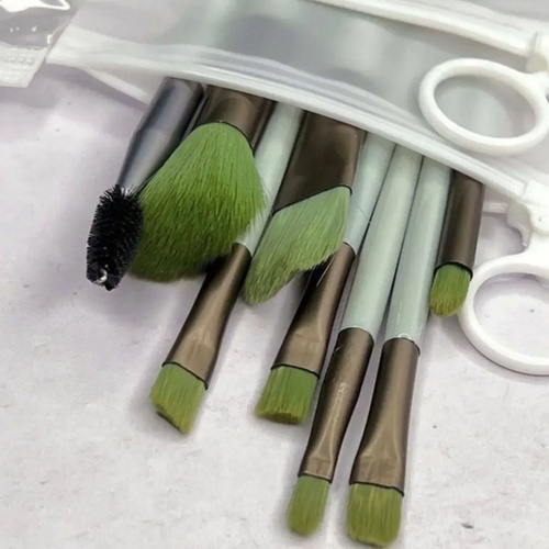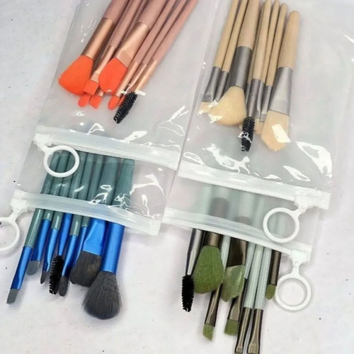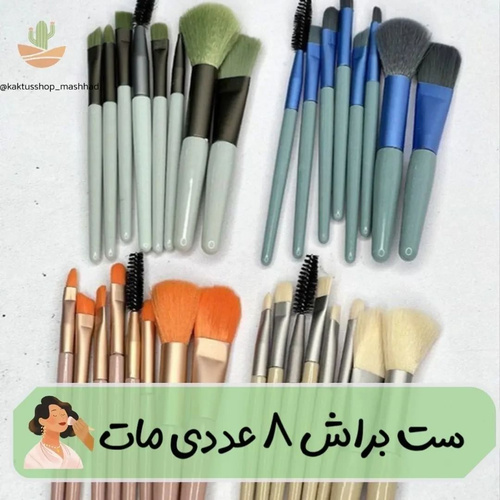#براش 8 تکه مات 5 رنگ زیبا بنفش نارنجی صورتی سبز آبی پر تراکم و کیفیت عالی شامل 8 عدد براش بسیار کاربردی همراه کیف طلقی بدون ریزش تراکم بالا و بسیار نرم کیفیت درجه یک
